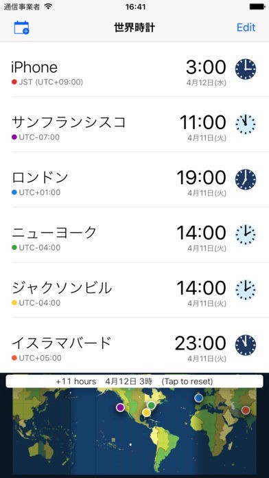 時差プラスはシンプルな操作で時差を確認できて現在時刻からの足す、引くを片手でやるだけで簡単に任意の都市と日本の時差を調べる事が可能になるアプリになります。現時刻にリセットするには地図をタップするだけで戻るので簡単です。