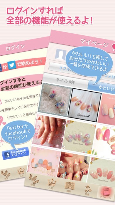 ネイルが綺麗に出来上がった時は誰かに見てもらいたいものです。そんな時はこのnailapを使うことにより皆とネイルデザインを共有することができます。 nailapには様々なネイルデザインが集まっているので次のネイルの参考にすることも可能になっています。 ジャンル別にネイルを観覧することができるので好みのネイルデザインをすぐに見つけることができます。 ネイリストもいるので上級者のネイルを参考にすることができるようになっています。さらにランキングもあるので人気のネイルもひと目で分かります。