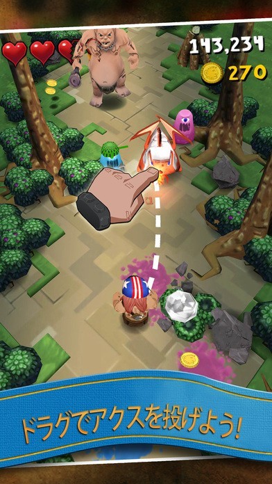 ドラック操作で敵のビーストに向かってアクスを投げつけてやっつける!