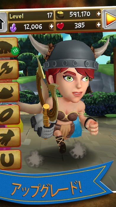 レベルを上げて主人公をアップグレード!アックスを投げて敵を撃退しよう!