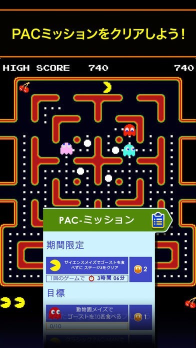 様々なミッションが用意されている「PAC-MAN」は3種類の難易度が搭載されたスマホアプリで、スワイプ操作で簡単に楽しめる特徴があります。ステージ内のクッキーを全て獲得することで次のステージに挑戦していけますし、期間限定のイベントに参戦出来るのが機能の利点でしょう。「ヒント」機能が収録されているので、初心者の方でも気軽にプレイ出来るようになっています。