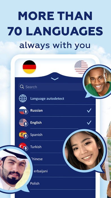 This convenient translator listens to you and automatically translates your speech. Simply select the language pair and voice a phrase - the translation will immediately appear on the screen and also will be pronounced. Don’t hesitate to use the application in foreign countries. Download offline dictionaries to use the translator offline.