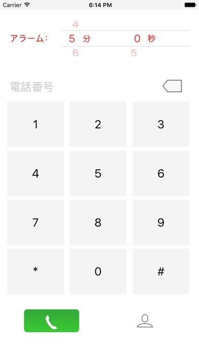App Storeより引用通話タイマーは通話時間を測り、設定したアラームに応じて、通知行います。特に各社の5分、10分通話放題プランに対して、役に立つと思います。