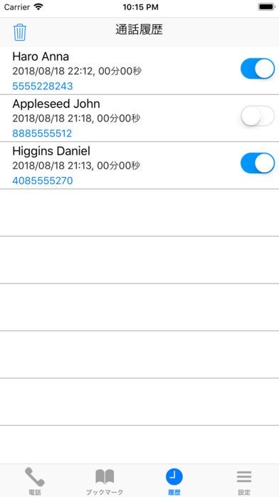 発信履歴の横にはスイッチが設置されており、スライドさせるだけでブックマークが完了します。ビジネス利用の際は頻繁に通話する取引先のみでまとめることができ、間違い電話の防止策としても活用可能です。