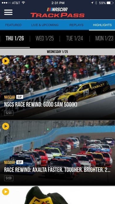 App Storeより引用Watch Monster Energy NASCAR Cup Series and XFINITY Series races LIVE in NASCAR TrackPass all over the globe. (Certain territory restrictions apply)