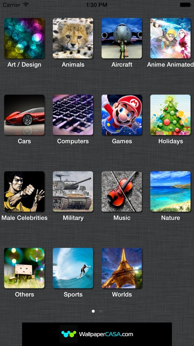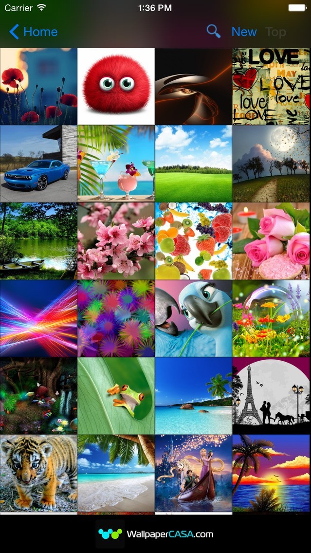 18万以上ものたくさんの高画質な壁紙があって、扱っている内容は、壮大な風景を写しているようなものから、ガンダムなどのアニメや、ブルース・リーなど多様なものがあります。 それらを選択するには、13のジャンルをまず選択して、その後でさらに細かな分類を見ることができます。 右上の「New」から新着の内容を知ることが出来ますので、すぐに新たなものをチェックすることができます。 加えて、右上のダウンロードボタンをタップすればすぐに保存できます。