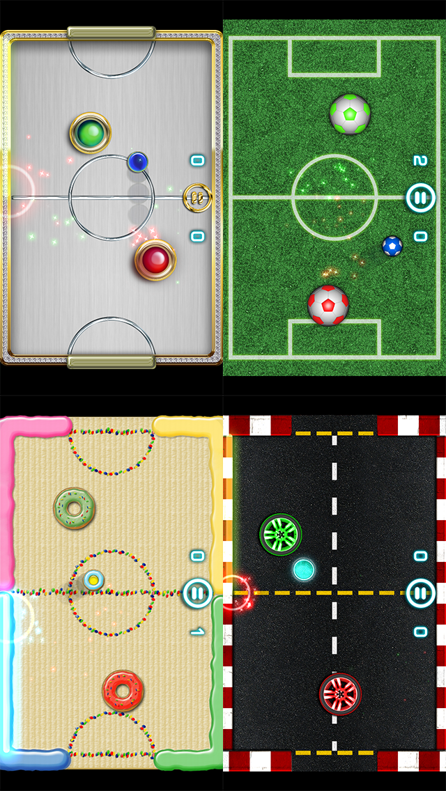 デザインが鮮やかで綺麗なので1度やったら普通のエアホッケーゲームでは物足りなくなってしまいます。点数が入った時にバイブレーション機能が起動するので興奮度がアップする面白さです。
