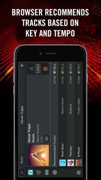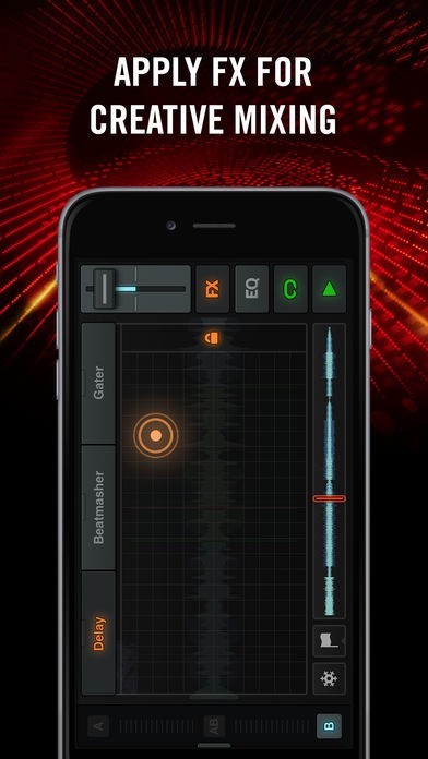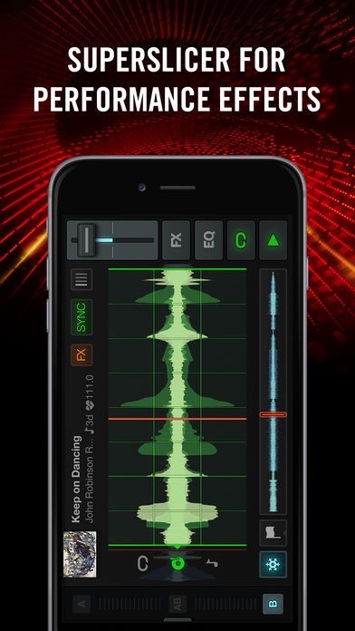 「iPhone用Traktor DJ」は、スマートフォンを使って本格的なDJプレイを楽しむことができるアプリとなっていて、シックな波型ディスプレイでスクラッチが可能です。