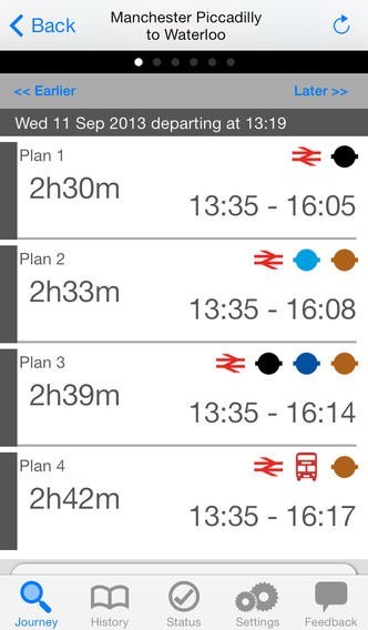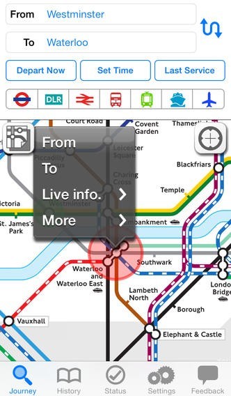 Covering the London tube, London bus, DLR, Overground, Tramlink, River Service, National Rail, Birmingham Tram, Glasgow Subway and domestic flights, our interactive maps will provide you with the best route using various combinations of available modes. Live service updates and departure boards are also available.