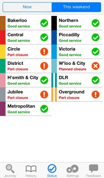 ■ Real-time push notifications for London tube service updates and weekend closures.