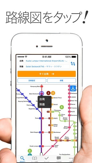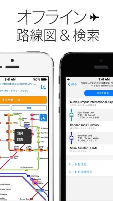 このアプリではマレーシア、クアラルンプールのRapidKL、KTM Komuter、KLIA Express/Transitを網羅した路線図を使い、無料で乗換検索が可能です。また地図上で目的地を選択することができ、操作も簡単です。