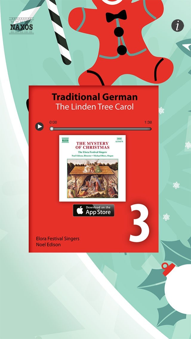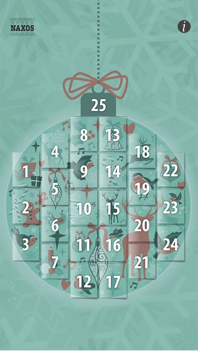 Naxos’s new musical app for Advent features 25 complete tracks behind numbered doors. Each day, a new door is ‘unlocked’ to reveal a new piece of seasonal music from Naxos’s classical music catalogue.