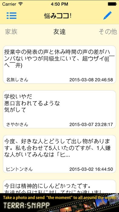 App Storeより引用日頃の愚痴、悩みを誰かに相談してみよう。