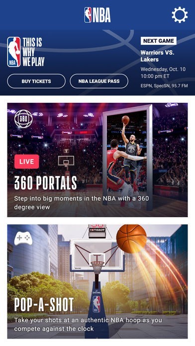 AR Portals: Step onto the court and behind the scenes of the NBA and some of its biggest events. Place the portal door in front of you, then walk inside to immerse yourself in a 360-degree video of your favorite NBA players and teams. New portals will appear in NBA AR every week!