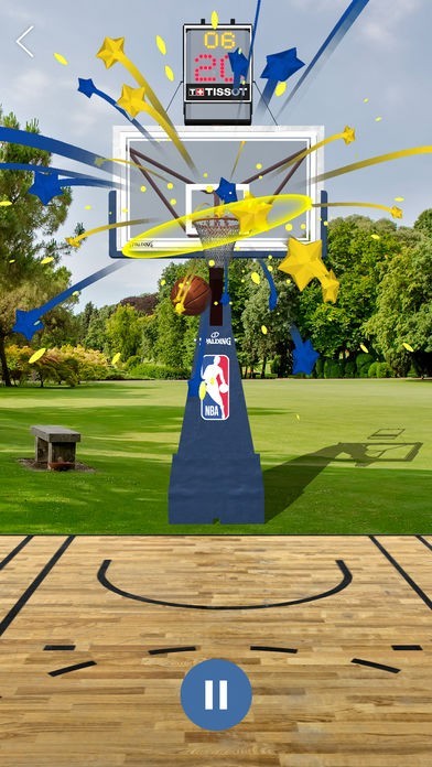 AR Pop-a-Shot Game: Take your shots at an authentic NBA shot as you compete against the clock -- and your friends -- to move up the global Game Center leaderboard. Feeling ambitious? Step back beyond the arc for a three-pointer. Even turn on your audio to listen to the crowd cheer you on in the middle of the action.