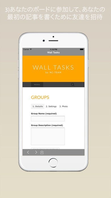 App Storeより引用ウォールのタスクを使用すると、彼らは彼らの共同活動を入力することができ、共通の活動、持つ人(学生、オフィス、スポーツクラブなど)のグループに対してメッセージボードを作成することができ、新しいソーシャルネットワークです。たとえば、同じクラスの生徒がタスクを入力することができ、チェックの日付は、など、誤解のトピックに関する支援を要求...