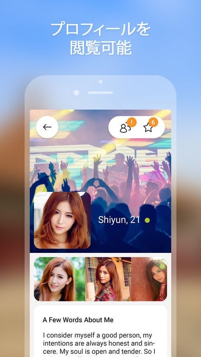 住んでいるエリアや地域を指定して好みの異性を簡単に探せるようになっています。また相手の顔写真やプロフィールを一覧で表示させる事が可能で、気軽にメッセージが送れます。