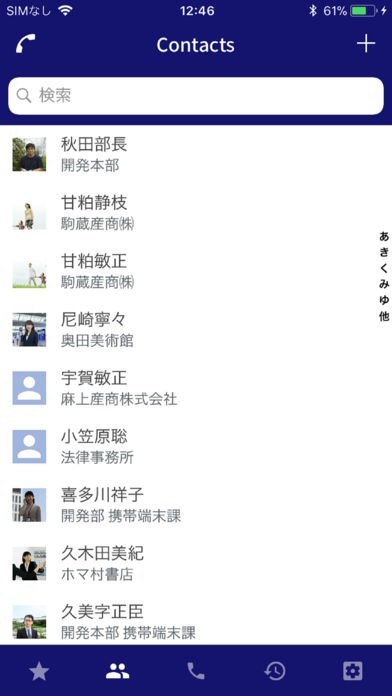・iOS電話帳閲覧、インデックスサーチ、フリーワード検索