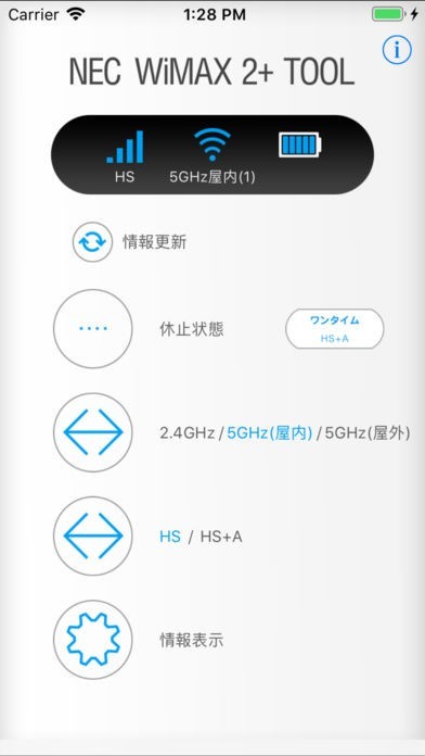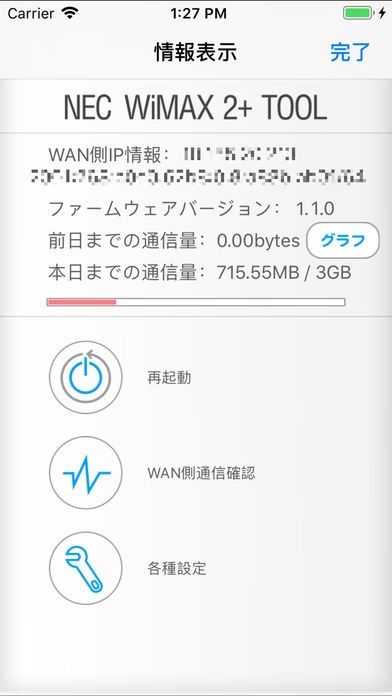 スマートフォンからファームウェアの更新や休止状態への移行、データ通信量の確認などを画面操作で行えるので便利です。