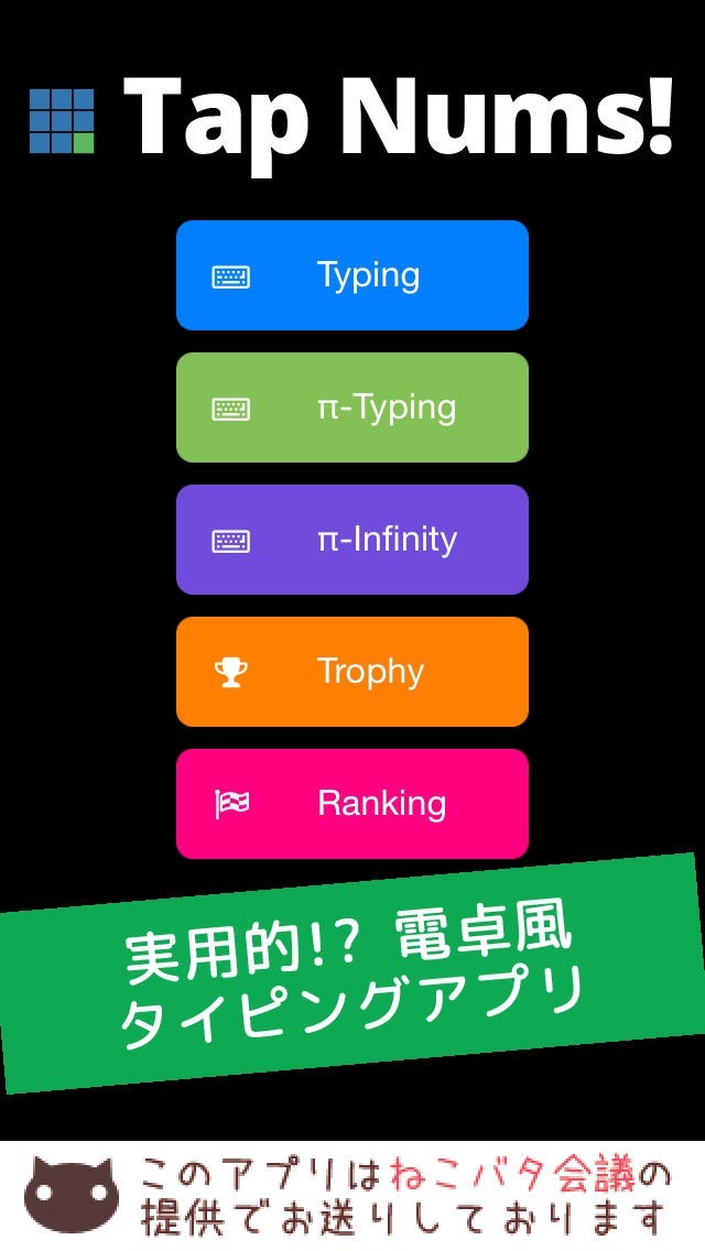 App Storeより引用Tap Nums!は電卓風10キータイピングゲームです。