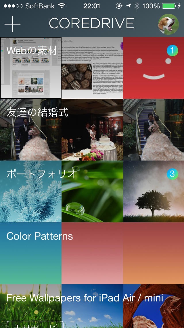 「COREDRIVE」には動画や音声、画像、文書など様々なファイルを共有できる機能が付いています。 同じプロジェクトに参加している仕事仲間とファイルを共有し、共同作業を行いたい時に便利です。 特定のユーザーと共有したい時はグループボードにて行います。 コメントやスタンプが付けられる機能も付いており、他のユーザーに感想やアドバイスなどを伝えることが可能です。 パソコンで作成したファイルをアップロードし、スマホで閲覧するといった使い方もできます。 他のサービスで有料という場合でもこのアプリでは5GBまでの容量なら無料で使えるため、経費の削減も期待できます。