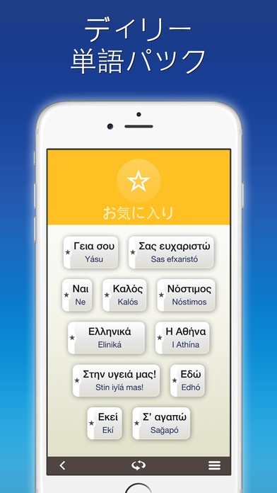 単語は、お気に入りに登録することが出来るので、覚えられなかったり、現地ギリシャで実際に使ってみたい単語は、予めお気に入りに登録しておく事で、スムーズに取り出すことが出来ます。