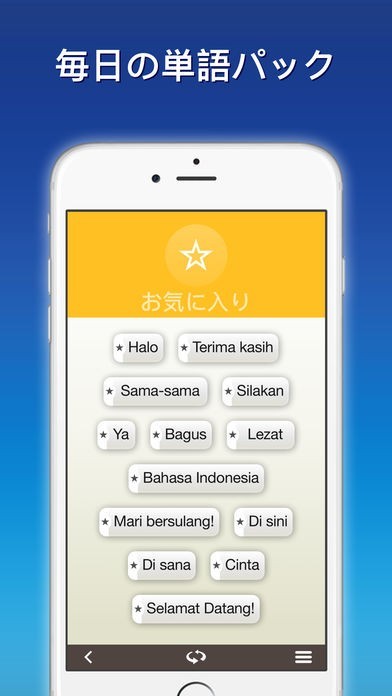 このアプリでは、ネイティブのインドネシア語音声を使った本格的な学習が行えます。一方で、本格的なスピーキング学習に使う事もでき、自分の発音とネイティブの発音の比較も行えます。