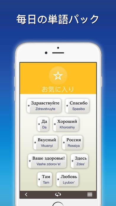 単語などは、お気に入りに登録することが出来る機能が付いているので、なかなか覚えられなかったり、ロシアへ旅行に行った際に使ってみたい単語はお気に入りに登録しておく事で、すぐに取り出すことが出来ます。