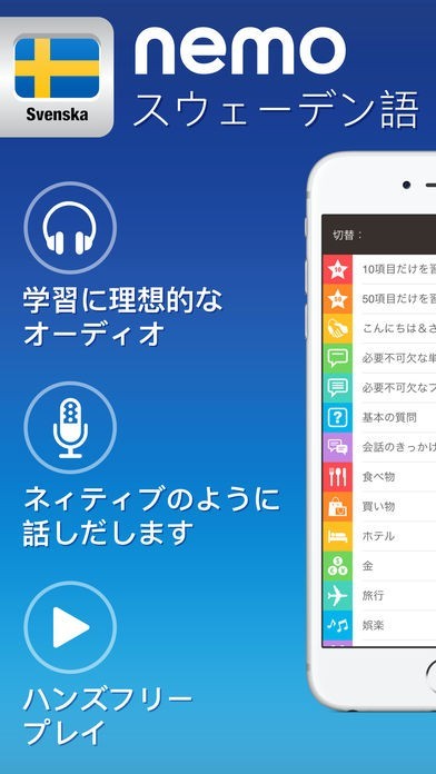 スウェーデン語に必須の単語・熟語を覚えられる学習アプリ nemo スウェーデン語