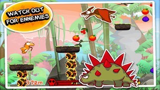 迫りくる敵や障害物をかわしながら、かわいい恐竜のキャラクターにどんどんフルーツを食べさせてあげましょう。フルーツを食べれば食べるほど、パワーアップすることができます。