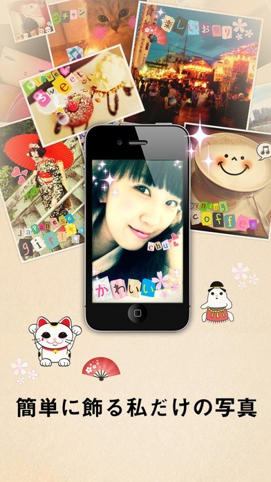 たまにはちょっと変わったメッセージを友達に送ってみたい。 マンネリしたメッセージのやり取りにちょっと刺激を加えたい。 脅迫文のような文体、フォントで写真を加工できるアプリです。 脅迫文とはいえ可愛らしいフォントとなっているため、相手に嫌な印象を持たれることもありません! ポップなスタンプが用意されており、可愛らしいデザインに拍車をかけています。 フォントはスマートフォンをシェイクすることでランダムに変更し、より可愛らしいデザインを簡単に生み出せます!