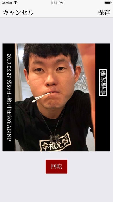 ④画像に加工される2本のバーを回転ボタンで上下または左右に選択し、保存
