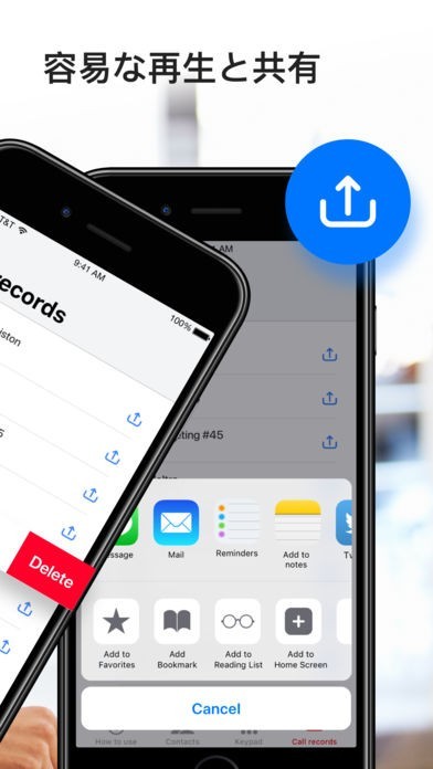 このアプリは記録を行った通話音声を共有機能で知り合いに音声を送信することが可能です。そのため記録した音声を自分の元だけに置いておくのではなく、複数人に音声を渡すことが可能です。