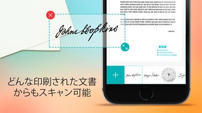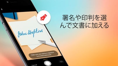 スキャン機能は、スマホのカメラで署名や印判をスキャンする