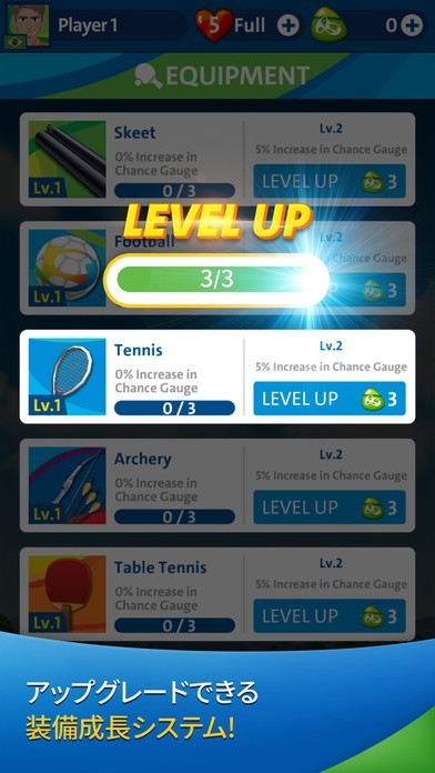 プレイ可能な競技は、アーチェリー、射撃、バスケットボール、サッカー、テニス、卓球の6競技。