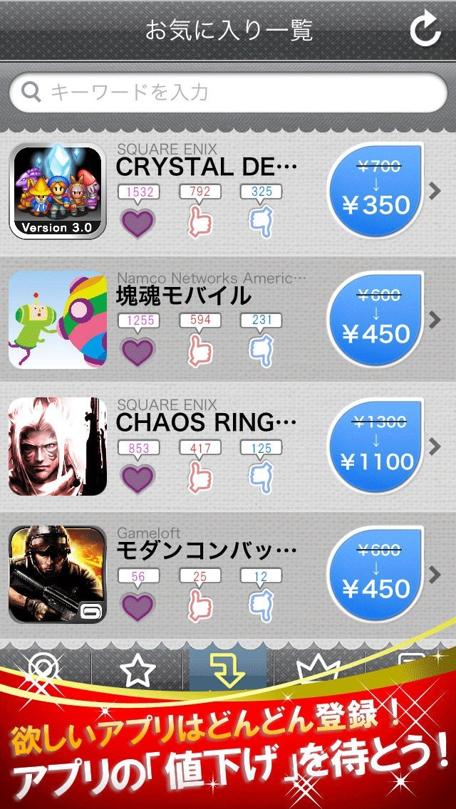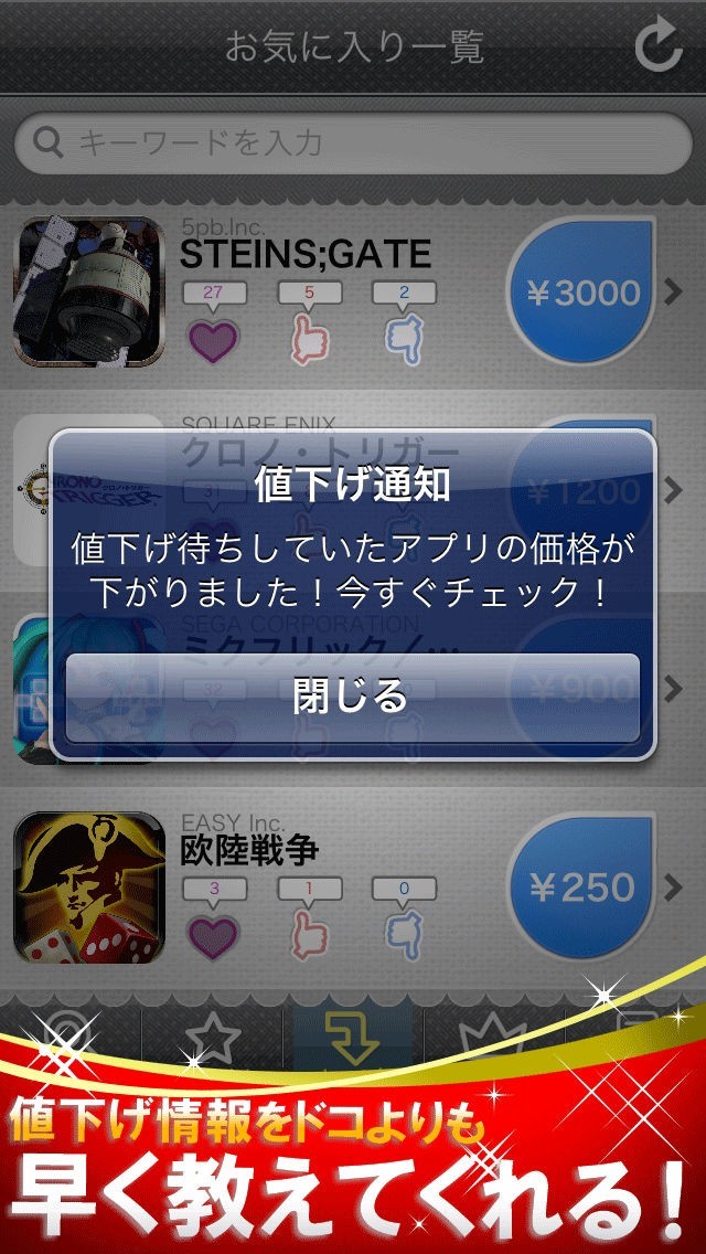 アプリが値下がりしたタイミングで、あなたにお知らせ致します。