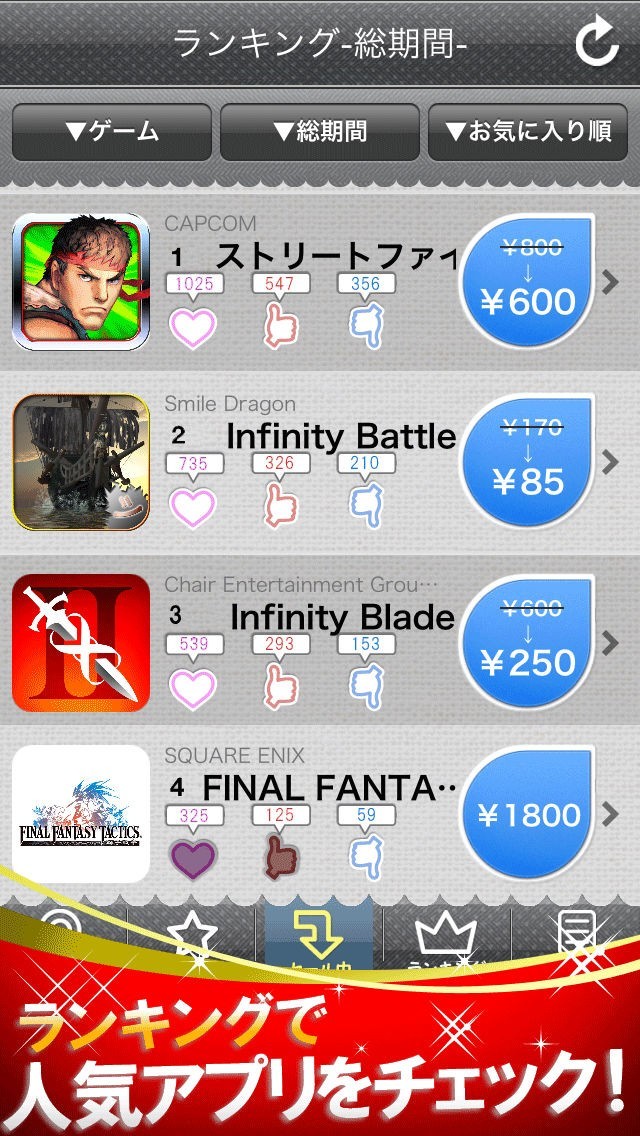 あなたの知らないアプリやネタアプリを簡単にランキング画面から探す事ができます。