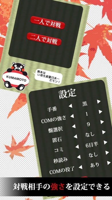 App Storeより引用くまモンの囲碁はこれから囲碁を始めたい!という方にピッタリの囲碁アプリです。