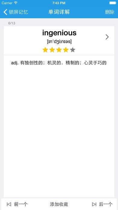 —“单词收藏”可用作“锁屏记忆”的备份,这里的单词不会自动删除