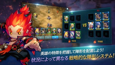 前列、中列、後列に様々な英雄の配置と組み合わせ、スキルタイミングで戦略的な戦闘を繰り広げよう