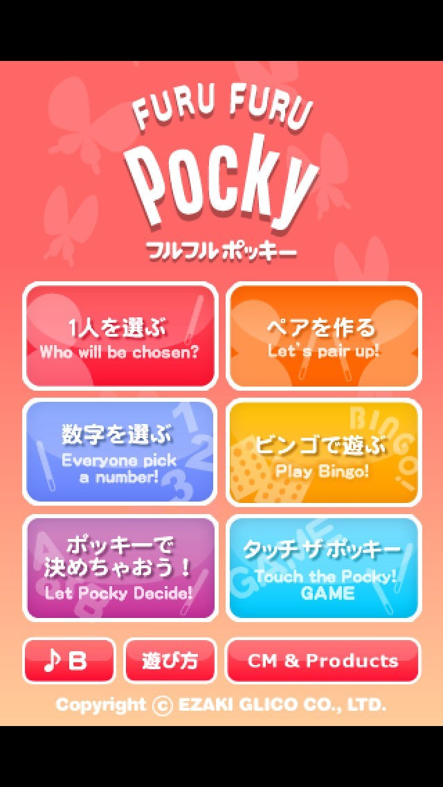 大人数で集まる飲み会や遊びたいとき、よくペアを組んだり抽選会をしたりしますよね。そんな時は全員で楽しみながらスムーズに進めたいですよね?「フルフルポッキー」は画面に現れるポッキーをフリフリして選ぶことで簡単にペアを作ったり1人選んだりすることができます。また、サイコロの代わりに使ったり、その数字にキーワードを設定してくじ引きを楽しむこともできます。参加者全員のスマホにアプリをインストールすると全員でビンゴ大会ができます。ビンゴマシーンとビンゴカードが一緒になっているのでイベントやパーティーでも盛り上がること間違いなし!ポッキーチョコレートやいちごポッキー、クラッシュポッキーも登場してオリジナルキーワード全角12文字以内を設定することでAorBもできちゃいます。