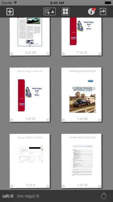 PDF files can be opened in neu.Annotate from any application that supports the "Open with..." menu command. This includes Mail, Safari, Box, Dropbox and many others. PDF files can also be imported using iTunes File Sharing, Dropbox, and WebDAV services.