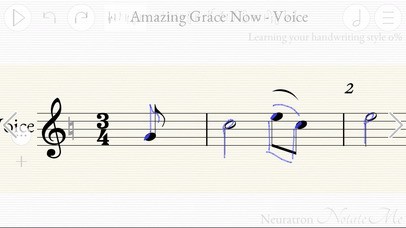 Note: It may take a short while for you to become accustomed to aligning parts of musical symbols when writing using a finger, particularly on a smaller screen.