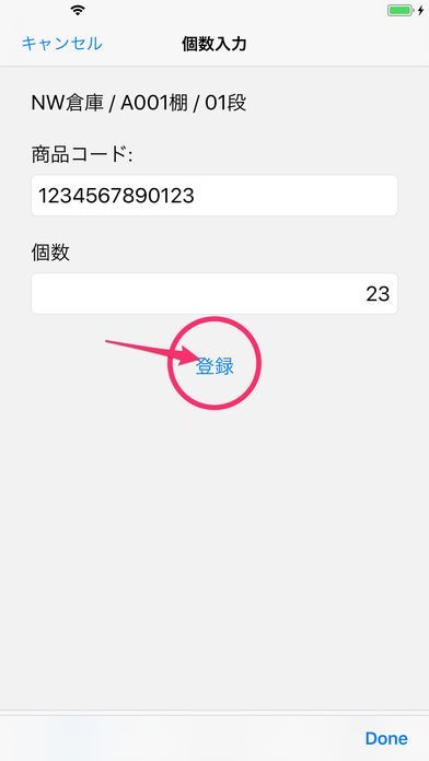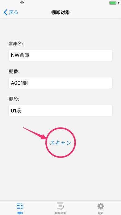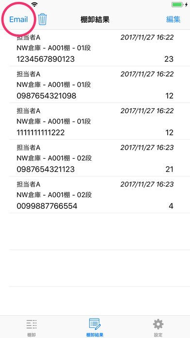 最初に担当者などの必要な情報を入力し、アプリを使用する準備をしてください。準備ができたら商品を読みこみます。すべての作業が完了したら結果をメールで送信し、ファイルを保管して終了です。