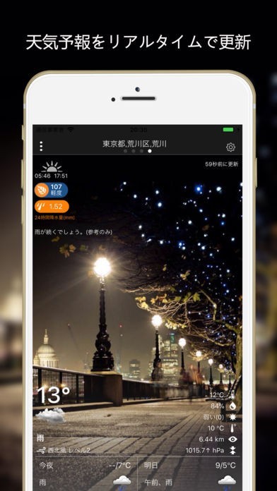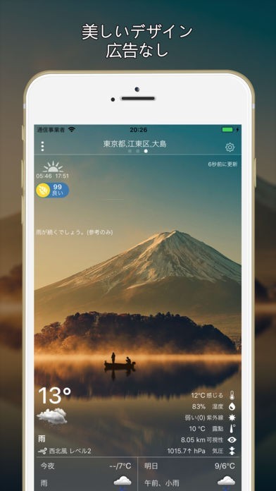 最短で5秒おきに天気予報が更新されるため、例えば山の上であったり急激な天候の変化にも余裕を持って対応することができます。更新される情報を見逃さないようにしましょう。