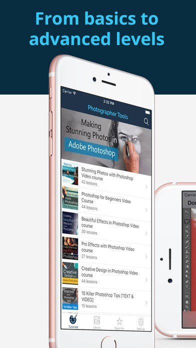 アマチュアからプロフェッショナルまで幅広いレベルの写真愛好家が利用している写真加工ツールであるアドビのPhotoshopをもっと使いこなすためのチュートリアルを体験することができるアプリが「Adobe Photoshopのチュートリアルのための写真家のツール」です。初期設定からホワイトバランス、コントラストなどの調整まで細かく操作方法を学ぶことができるようになっているので初めての人でもスムーズにPhotoshopを使いこなすことができるようになります。レベルにあわせたトレーニングコースが用意されているので着実に知識を深めることができます。