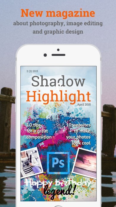 Shadow & Highlight Photoshop、写真撮影、写真の編集やグラフィカルなデザインについての新しい雑誌のスクリーンショット