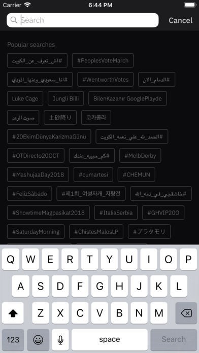 - Search with promoted worldwide popular tags, twitter search rules and search history;