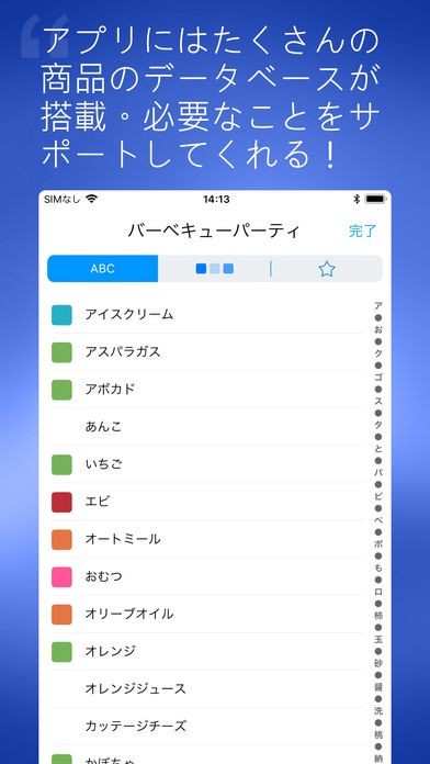 買い物のリストを簡単に作成できるアプリです。商品のデータベースが用意されているので、リストに商品を追加する時は商品名を選んでタップするだけで済み、いちいち手作業で入力する必要がありません。商品名はジャンルごとに自動で色分けされているので、一目で確認ができます。家族一人一人の端末からアクセスできるので、買い物リストを共有できます。買い物リストに入れ忘れた商品があっても、家族の誰かが買い物に行っている間にリストを追加しておけばよいので、電話やメールで伝える手間を省けます。同期スピードが速いので常に最新情報が表示されてストレスなく使えます。