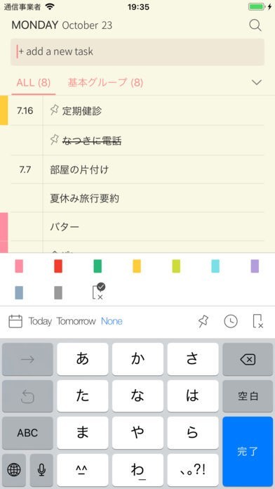 終了タスクはダブルタップするだけでチェック完了。進行中のタスクと分けてより判りやすく管理!